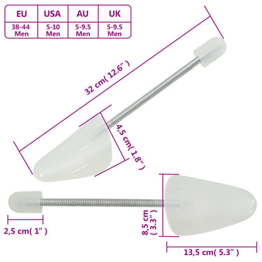 Diese Schuhspanner sorgen dafür, dass deine Schuhe nicht knittern und auch nach mehrmaligem Tragen ihre Form behalten. Flexibles Design: Diese Schuhspanner sind mit Löchern versehen und ihre Länge kann man nach Bedarf anpassen. Sie können auch als Stiefelspanner verwendet werden, indem man sie vertikal einsetzt. Langlebige Materialien: Diese Schuhdehner bestehen aus starkem Eisen und langlebigem Kunststoff und sind langlebig, leicht und einfach zu verwenden. Multifunktional: Der Anti-Falten-Schutz aus Kunststoff hält deine Schuhe in bestem Zustand, beugt Falten, Knitter und unangenehmen Gerüchen vor und sorgt gleichzeitig für eine längere Lebensdauer deines Schuhwerks.