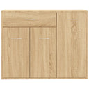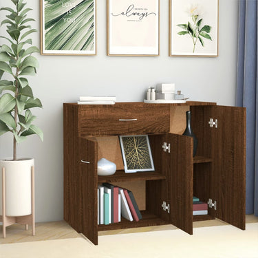 Dieses Sideboard im minimalistischen Design wird eine praktische und zugleich dekorative Ergänzung zu Ihrem Zuhause sein! Diese Kommode ist aus hochwertigem Holzwerkstoff gefertigt und ist dadurch äußerst langlebig und robust. Mit 1 großen Schublade und 3 Türen bietet sie viel Stauraum für Bücher, Multimedia-Geräte und andere Dinge. Die stabile Oberplatte ist ideal für die Präsentation von Dekorationsgegenständen, Fotorahmen oder Topfpflanzen. Das Sideboard ist einfach zu montieren.