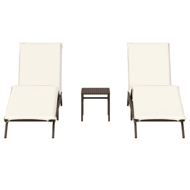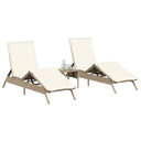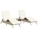 Sonnenliegen 2 Stk. mit Tisch Beige Poly Rattan