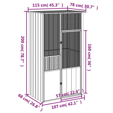 Voliere Grau 115x78x200 cm Verzinkter Stahl