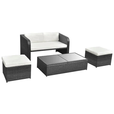 4-tlg. Garten-Lounge-Set mit Auflagen Poly Rattan Schwarz