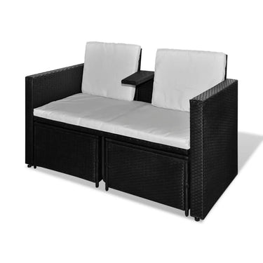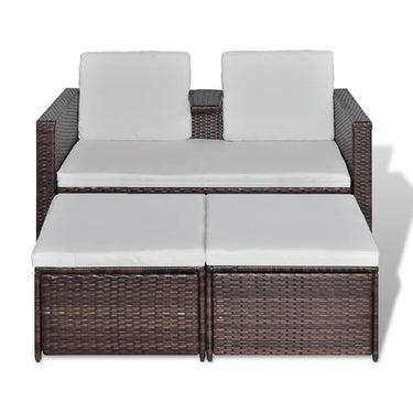 Dieses Outdoor-Lounge-Set aus Rattan umfasst ein ästhetisch und ergonomisch gestaltetes 2-Sitzer-Gartensofa und 2 dazu passende Füßstützen. Es wird mit Bestimmtheit zum Hingucker in Ihrem Außenrelaxbereich.Dieses Lounge-Set ist aus hochwertigem, handgewebten PE-Rattan gefertigt und mit weichen, komfortablen Polstern ausgestattet. Das Material ist vollständig wasser-, UV- und witterungsbeständig, schmutzabweisend und pfelegleicht und vor allem umweltfreundlich. Dank dieser Eigenschaften wird das Set jahrelang in gutem Zustand bleiben, ohne Beschädigungsspuren aufzuweisen. Die cremeweißen Kissen runden das Ganze chromatisch wunderbar ab. Die Polsterbezüge sind dank Reißverschlüssen abnehmbar und bei 30° maschinenwaschbar.