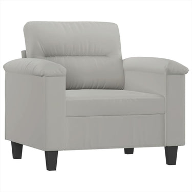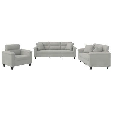Diese Sofagarnitur bietet einen ausgezeichneten Platz zum Plaudern, Lesen, Fernsehen oder einfach nur zum Entspannen. Sie wird ein echter Blickfang in deinem Zuhause sein. Langlebige Mikrofaser: Mikrofaser ist ein synthetisches Gewebe aus ultrafeinen Fasern, die besonders unempfindlich gegen Flecken sind. Mikrofasergewebe ist aufgrund seiner Langlebigkeit und einfachen Reinigung eine gute Wahl für Möbelpolster.Robustes und stabiles Gestell: Das Gestell aus Sperrholz und Metall verleiht der Sofagarnitur Robustheit und Stabilität.Bequemes Sitzerlebnis: Mit dick gepolsterten Sitzflächen, Armlehnen und Rückenkissen versehen, ist das Sofa sehr bequem.Vielseitiger Fußhocker: Der Hocker eignet sich zum Ausruhen der Füße beim Liegen auf dem Sofa, kann aber auch als zusätzliche Sitzgelegenheit in deinem Zimmer dienen. Darüber hinaus eignet er sich durch sein schlichtes Design und seine kompakte Größe für fast alle Wohnräume.