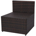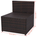 Diese Rattan-Gartensofagarnitur vereint Stil und Funktionalität und wird zum Hingucker in Ihrem Garten oder auf der Terrasse sein. Das gesamte Möbel-Set ist für die ganzjährige Nutzung im Freien vorgesehen. Dank des witterungsbeständigen und wasserfesten PE-Rattans ist dieses Lounge-Set leicht zu reinigen, strapazierfähig und bestens geeignet für den täglichen Gebrauch. Die Sitzgarnitur zeichnet sich durch einen stabilen, pulverbeschichteten Stahlrahmen aus, der sehr robust ist. Es ist modular aufgebaut und leichtgewichtig, weshalb es flexibel an jede Raumsituation angepasst werden kann. Die dicken, abnehmbaren Kissen sind sehr bequem. Ein Reißverschluss sorgt dafür, dass die Bezüge leicht entfernt und gewaschen werden können. Die Lieferung umfasst 2 Sofa-Elemente mit Armlehne, 2 Sofa-Elemente ohne Armlehne, 1 Teetisch, 4 Sitzkissen und 4 Rückenkissen. Hinweis: Wir empfehlen, das Gartensofa-Set bei Regen, Schnee oder Frost abzudecken.