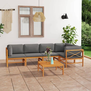 5-tlg. Garten-Lounge-Set mit Grauen Kissen Massivholz Teak
