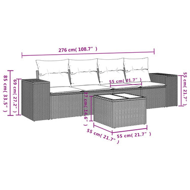 5-tlg. Garten-Sofagarnitur mit Kissen Beige Poly Rattan