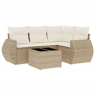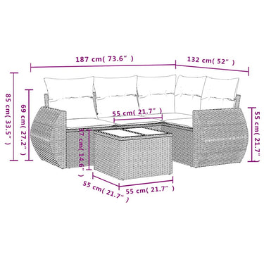 5-tlg. Garten-Sofagarnitur mit Kissen Braun Poly Rattan
