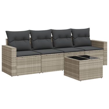 5-tlg. Garten-Sofagarnitur mit Kissen Grau Poly Rattan