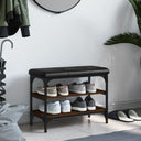 In dieser Schuhbank kannst du deine Schuhe ordentlich und stets griffbereit aufbewahren! Stabile Konstruktion: Holzwerkstoff ist ein Material von außergewöhnlicher Qualität mit glatter Oberfläche, das sich durch Festigkeit, Stabilität und Feuchtigkeitsbeständigkeit auszeichnet. Der Metallrahmen verleiht der Bank zusätzliche Stabilität und Robustheit.Viel Stauraum: Die Flurbank bietet reichlich Stauraum, um deine Schuhe gut organisiert aufzubewahren und für Ordnung in deinem Wohnbereich zu sorgen.Bequeme Sitzgelegenheit: Das dick gepolsterte Sitzkissen sorgt für optimalen Sitzkomfort beim An- und Ausziehen der Schuhe.Vielseitig einsetzbar: Die Bank eignet sich perfekt als Schuhbank im Flur oder als Aufbewahrungsbank im Wohnzimmer.