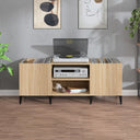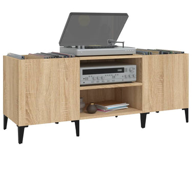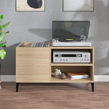 In diesem praktischen und klassischen Plattenschrank kannst du deine Schallplatten aufbewahren und zur Schau stellen. Langlebiges Material: Holzwerkstoff ist ein Material von außergewöhnlicher Qualität mit glatter Oberfläche, das sich durch Festigkeit, Stabilität und Feuchtigkeitsbeständigkeit auszeichnet.Viel Stauraum: Der geräumige Schallplattenschrank bietet reichlich Stauraum für LP-Schallplatten, um deine Musiksammlung ordentlich aufzubewahren.Stabile Oberplatte: Die robuste Oberplatte des Vinylschrankes bietet den idealen Platz für deinen Plattenspieler oder andere elektronische Geräte.Mehrere Funktionen: Dieser Plattenschrank kann auch als Beistellschrank im Wohnzimmer oder als Aktenschrank im Büro und Arbeitszimmer verwendet werden.Metallbeine: Die Metallbeine verleihen dem Highboard einen industriellen Stil und sorgen gleichzeitig für Stabilität.
