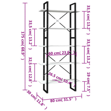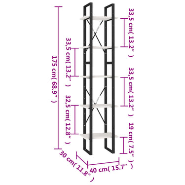 Bücherregal 5 Fächer Weiß 60x30x175 cm Massivholz Kiefer