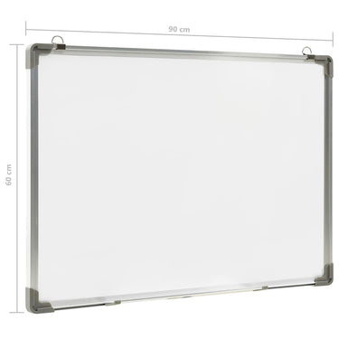 Diese wandmontierte, magnetische Weißwandtafel ist eine ideale Lösung, um einen zentralen Platz in Ihrem Zuhause oder Büro zu schaffen, an dem Sie schreiben, zeichnen oder Fotos anbringen können. Das Whiteboard hat eine lackierte Stahloberfläche, die mit dem im Lieferumfang enthaltenen Marker und dem Tafelwischer leicht zu beschriften und zu reinigen ist. Der Aluminiumrahmen und der Eckenschutz machen es robust und gleichzeitig langlebig. Sie können ebenfalls Gegenstände, durch die mitgelieferten Magnete, aufhängen. Für das einfache Aufhängen der Tafel sind Haken sowie Nägel im Lieferumfang enthalten.