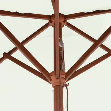 Het parasoldoek is gemaakt van uv-beschermend en anti-vervagend polyester waardoor het je optimale bescherming tegen de zon biedt en het gemakkelijk schoon te maken is. De paaldiameter is 38 mm waardoor hij in een bestaande voet of in het midden van een tafel geplaatst kan worden. De sterke houten paal en de 6 duurzame baleinen maken de parasol zeer stabiel en duurzaam. De tuinparasol kan eenvoudig geopend en gesloten worden dankzij het eenvoudige katrolsysteem. Het product is eenvoudig te monteren.