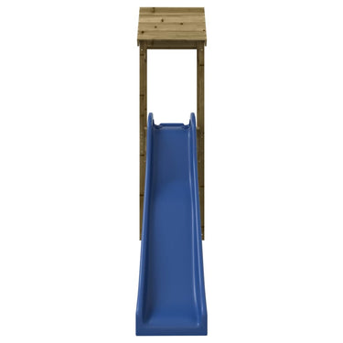 Möchtest du deinen Kindern ihren eigenen Spielplatz schenken? Dieser Spielplatz aus Holz ermöglicht fantasievolle Abenteuer im eigenen Garten! Langlebiges Material: Dieser Kletterturm mit Rutsche ist aus unter kesseldruckimprägniertem Kiefernholz gefertigt. Kiefer-Massivholz ist ein schönes Naturmaterial. Kiefernholz weist eine gerade Maserung auf und die Aststellen verleihen dem Holz seine charakteristische, rustikale Optik. Die Kesseldruckimprägnierung ist ein Konservierungsverfahren, das mit Hilfe von Autoklaven durchgeführt wird. Sie erhöht die Fäulnis- und Witterungsbeständigkeit des Holzes. Robuster und stabiler Rahmen: Der Holzrahmen verleiht dem Spielturm Robustheit und Stabilität. Spielzentrum: Der Spielturm verfügt über eine 90 cm hohe Plattform, eine Wellenrutsche sowie einen Sandkasten. So können deine Kleinen auch ihre Freunde zum Mitspielen einladen. Durchdachtes Design: Das Holzdach spendet an heißen Sommertagen angenehmen Schatten. Unendlicher Spaß: Dieses lustige Spielhaus aus Holz bietet deinen Kindern und ihren Freunde die perfekte Möglichkeit, Spaß zu haben, nach Herzenslust zu spielen und tolle Erinnerungen fürs Leben zu schaffen! Achtung:Nur für den HausgebrauchFür den Außenbereich Nicht geeignet für Kinder unter 3 Jahren Empfohlenes Benutzeralter: 3-8 Jahre Hinweis:Das Produkt muss zur Verringerung der Kippgefahr verankert werden; Anker sind nicht im Lieferumfang enthalten. Gut zu wissen:Im Lieferumfang ist nur die Rutsche enthalten, das Spielhaus ist nicht im Lieferumfang enthalten.Um die Montage so einfach wie möglich zu machen, wird jedes Produkt mit einer Anleitung geliefert.