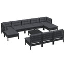 11-tlg. Garten-Lounge-Set mit Grauen Kissen Kiefernholz