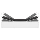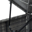Schaffen Sie mit dieser stilvollen Sonnenliege und dem Teetisch einen auffälligen und entspannenden Loungebereich, von dem Sie schon immer geträumt haben. Auf dieser Sonnenliege können Sie einen entspannten, sonnigen Nachmittag mit Ihrem Freund genießen! Diese Chaiselongue aus wetterbeständigem PE-Rattan ist leicht zu reinigen, strapazierfähig und für den täglichen Gebrauch geeignet. Es verfügt über einen stabilen pulverbeschichteten Stahlrahmen, wodurch diese Sonnenliege besonders stabil und langlebig ist. Beide Seiten des Bettes können hochgezogen und in unterschiedlichen Einstellungen für die bequemsten Sitz- oder Liegepositionen eingestellt werden. Die dick gepolsterte Auflage bietet ultimativen Komfort und zusätzlichen Halt. Der Bezug ist zum einfachen Waschen abnehmbar. Auf dem mitgelieferten Beistelltisch können Sie sogar Ihre Getränke, Telefone, Bücher oder andere Kleinigkeiten in Reichweite halten. Hinweis: Wir empfehlen, die Sonnenliege und den Tisch bei Regen, Schnee und Frost abzudecken.