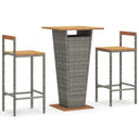 3-tlg. Gartenbar-Set Grau Poly Rattan & Massivholz Akazie
