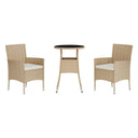 An diesem stilvollen Garten-Bistro-Set können Sie eine entspannte und angenehme Zeit mit Ihrer Familie und Ihren Freunden verbringen. Langlebiges Material: PE-Rattan, auch als Poly Rattan bekannt, ist witterungsbeständig und pflegeleicht. Seine Oberfläche weist lange Zeit eine ansprechende Optik auf. Es bietet hohe Qualität, Komfort und einen ästhetisches Look. Robuster und stabiler Rahmen: Die pulverbeschichteten Stahlrahmen verleihen den Gartenmöbeln Robustheit und Stabilität. Bequemes Sitzerlebnis: Mit Rücken- und Armlehnen versehen, bieten diese Garten-Bistrostühle höchsten Komfort. Zum hohen Sitzkomfort tragen auch die dick gepolsterten Kissen bei. Robuste Tischplatte: Die robuste Tischplatte des Bistrotisches bietet den perfekten Platz für Kaffeetassen, Getränke, Vasen, Obstschalen oder einige Dekoartikel. Hinweis:Damit deine Gartenmöbel lange schön bleiben, empfehlen wir dir, sie mit einer wasserdichten Hülle zu schützen.
