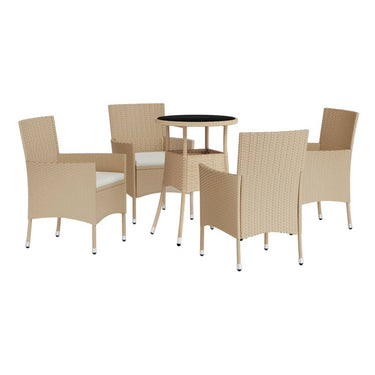5-tlg. Garten-Bistro-Set mit Kissen Schwarz Poly Rattan
