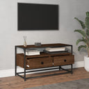 Mit seinem stilvollen und praktischen Design ist dieser TV-Schrank ein echter Hingucker in deinem Wohnraum. Langlebiges Material: Holzwerkstoff ist ein Material von außergewöhnlicher Qualität mit glatter Oberfläche, das sich durch Festigkeit, Stabilität und Feuchtigkeitsbeständigkeit auszeichnet.Viel Stauraum: Mit 2 Schubladen versehen, bietet der TV-Ständer reichlich Stauraum, um all deine Zeitschriften, DVDs und andere Gegenstände gut organisiert aufzubewahren.Robuste Oberplatte: Die robuste Oberplatte bietet den idealen Platz, um Dekoartikel, Bilderrahmen und Topfpflanzen zur Schau zu stellen.Metallfüße: Die Metallfüße verleihen ihm eine angenehme Optik und sorgen gleichzeitig für Stabilität.