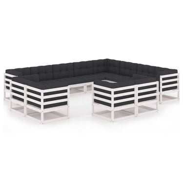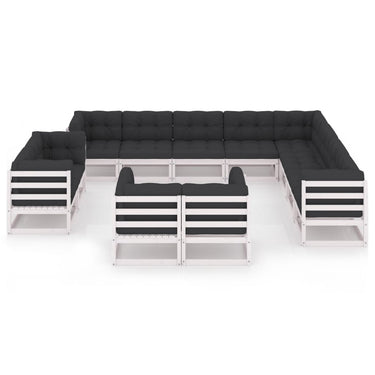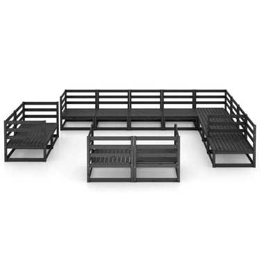 12-tlg. Garten-Lounge-Set mit Kissen Schwarz Massivholz Kiefer