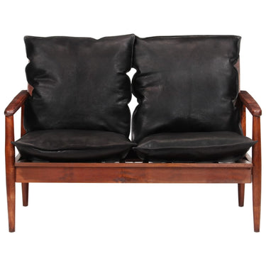 2-Sitzer-Sofa Schwarz Echtleder und Massivholz Akazie