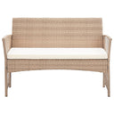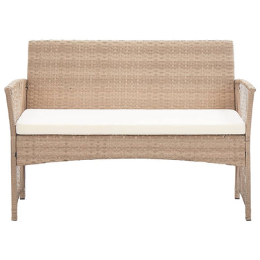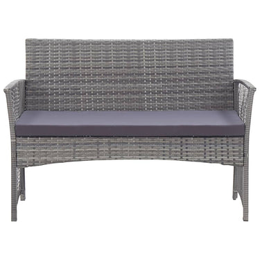 Verschönern Sie Ihren Außenbereich und machen Sie ihn so einladend wie Ihre Wohnungseinrichtung mit unserem 4-teiligen Garten-Lounge-Set! Dieses Set kombiniert Stil und Funktionalität, wodurch es zum Mittelpunkt Ihrer Terrasse oder Ihres Gartens wird. Das gesamte Set kann das ganze Jahr über im Freien verwendet werden. Dank des wetterfesten und wasserdichten PE-Rattans ist das Lounge-Set leicht zu reinigen, strapazierfähig und für den täglichen Gebrauch geeignet. Die Garten-Sofagarnitur verfügt über einen stabilen pulverbeschichteten Stahlrahmen und ist dementsprechend äußerst langlebig. Dicke gepolsterte Kissen sorgen für höchsten Sitzkomfort in Ihrer Freizeit. Der Bezug ist zum einfachen Waschen mit einem Reißverschluss versehen. Die Lieferung umfasst 1 Bank, 2 Stühle und 1 Couchtisch. Hinweis: Wir empfehlen, die Gartenmöbel bei Regen, Schnee und Frost abzudecken, um ihre Lebensdauer zu verlängern.