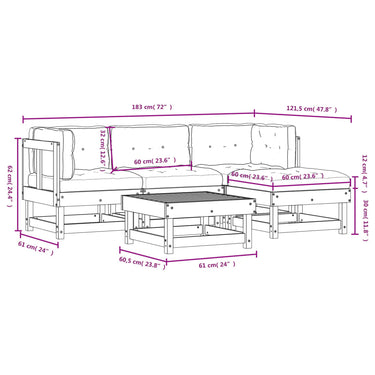 Dieses Garten-Lounge-Set aus Holz, das sich durch sein Latten-Design und weiche Kissen auszeichnet, ist eine tolle Ergänzung zu deinem Garten, Innenhof oder deiner Terrasse, um gemütliche Stunden mit deiner Familie oder deinen Freunden zu verbringen. Massives Kiefernholz: Massives Kiefernholz ist ein wunderschönes Naturmaterial. Kiefernholz weist eine gerade Maserung auf und die Aststellen verleihen dem Material seine charakteristische, rustikale Optik.Robuster und stabiler Rahmen: Dank des Holzrahmens ist das Lounge-Set robust, stabil und für den täglichen Einsatz im Freien geeignet.Bequemes Sitzerlebnis: Die Rückenlehne und die Armlehne verleihen dem Gartenmöbelset zusätzlichen Sitzkomfort. Zum hohen Sitzkomfort tragen auch die dick gepolsterten Kissen bei.Modulares Design: Die Sofagarnitur lässt sich flexibel und leicht umstellen und mit anderen modularen Elementen aus unserem Webshop frei kombinieren, um dein ganz persönliches Garten-Lounge-Set zusammenzustellen! Gut zu wissen:Damit deine Gartenmöbel lange schön bleiben, empfehlen wir dir, sie mit einer wasserdichten Hülle zu schützen.