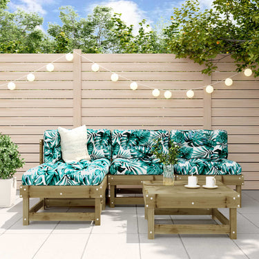 Dieses Garten-Lounge-Set aus Holz, das sich durch sein Latten-Design und weiche Kissen auszeichnet, ist eine tolle Ergänzung zu deinem Garten, Innenhof oder deiner Terrasse, um gemütliche Stunden mit deiner Familie oder deinen Freunden zu verbringen. Massives Douglasienholz: Massives Douglasienholz ist ein sehr langlebiges Material, das sich gut für den Außenbereich eignet. Douglasienholz ist selbst bei Witterungseinflüssen sehr robust und erfordert wenig Pflege.Robuster und stabiler Rahmen: Dank des Holzrahmens ist das Lounge-Set robust, stabil und für den täglichen Einsatz im Freien geeignet.Bequemes Sitzerlebnis: Die Rückenlehne und die Armlehne verleihen dem Gartenmöbelset zusätzlichen Sitzkomfort. Zum hohen Sitzkomfort tragen auch die dick gepolsterten Kissen bei.Modulares Design: Die Sofagarnitur lässt sich flexibel und leicht umstellen und mit anderen modularen Elementen aus unserem Webshop frei kombinieren, um dein ganz persönliches Garten-Lounge-Set zusammenzustellen! Gut zu wissen:Damit deine Gartenmöbel lange schön bleiben, empfehlen wir dir, sie mit einer wasserdichten Hülle zu schützen.