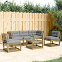 5-tlg. Garten-Sofagarnitur mit Kissen Weiß Massivholz Kiefer