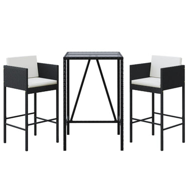 5-tlg. Gartenbar-Set mit Kissen Schwarz Poly Rattan