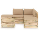 De pallet loungeset is gemaakt van geïmpregneerd grenenhout, waardoor hij duurzaam en weerbestendig is. Deze tuinset heeft een massieve constructie en vergt weinig onderhoud. Dankzij de dik gevoerde kussens biedt deze meubelset het hoogste comfort. Verder maakt het modulaire design het mogelijk om de set in elke gewenste opstelling te plaatsen.
