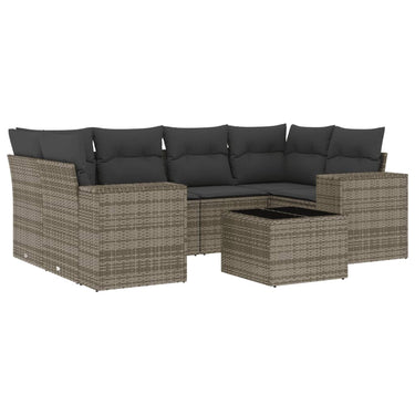 7-tlg. Garten-Sofagarnitur mit Kissen Braun Poly Rattan