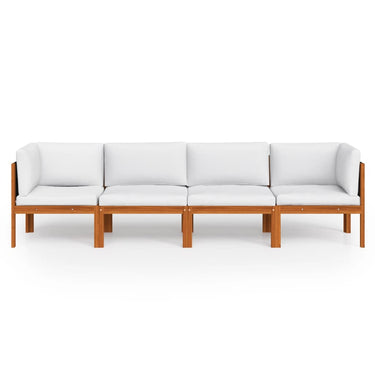 Dieses Gartensofa-Set ist die ideale Wahl, um sich zu entspannen und das Wetter zu genießen, ein Nickerchen zu machen oder mit Ihrer Familie oder Freunden zu plaudern. Mit ihrem zeitlosen Design verleiht diese Sofagarnitur aus Holz Ihrer Terrasse, Ihrem Garten oder Wohnzimmer einen Hauch von rustikalem Charme. Die Gartengarnitur besteht aus hochwertigem, massivem Akazienholz, einem tropischen Hartholz, das witterungsbeständig und äußerst langlebig ist. Dank Öl-Finish weist das Gartenmöbel-Set eine warme Farbe auf und lässt sich auch leicht reinigen und pflegen. Darüber hinaus sind im Lieferumfang auch Sitz- und Rückenkissen mit dicker Polsterung enthalten, die für höchsten Komfort sorgen.