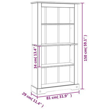 Bücherschrank 5 Fächer Mexiko-Stil Kiefernholz 80x40x170 cm