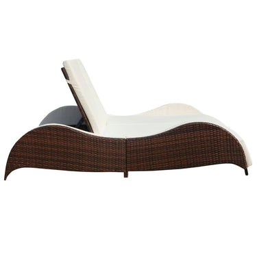 Doppel-Sonnenliege mit Auflage Poly Rattan Braun