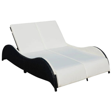 Doppel-Sonnenliege mit Auflage Poly Rattan Schwarz