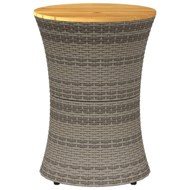 Garten-Beistelltisch Trommelform Beige Poly Rattan Massivholz