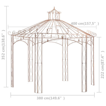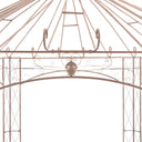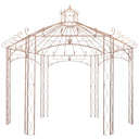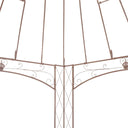 Dieser Gartenpavillon wird ganz bestimmt zum Blickfang und wunderschönen Schattenspender. Aus Schmiedeeisen gefertigt, bietet dieser Pavillon eine ganz stabile Stütze für Rosen und andere Kletterpflanzen. Die feine Verzierungen verleihen der Gartenlaube eine romantische Note und bringen Eleganz auf Ihre Terrasse bzw. in Ihren Garten. Darüber hinaus ist dieser Gartenpavillon mit seinem ästhetisch ansprechenden Bogendesign der ideale Schattenspender bei heißem Wetter. Des Weiteren ist der Pavillon auch ein wundervoller Platz für Kletterpflanzen wie Efeu, Waldrebe, Glyzinie, Reben, Blumen, usw. Hinweis: Dieser Artikel sollte NIEMALS bei rauen Wetterbedingungen, wie starkem Wind, Regenschauer, starkem Schneefall, Sturm, Hagel, usw., genutzt werden.