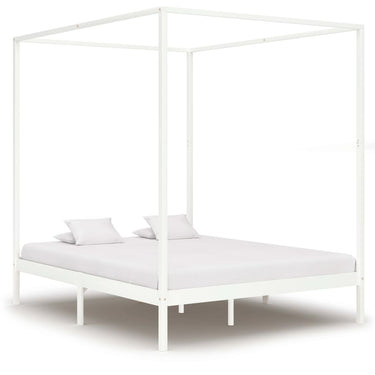 Hemelbedframe massief grenenhout wit 160x200 cm