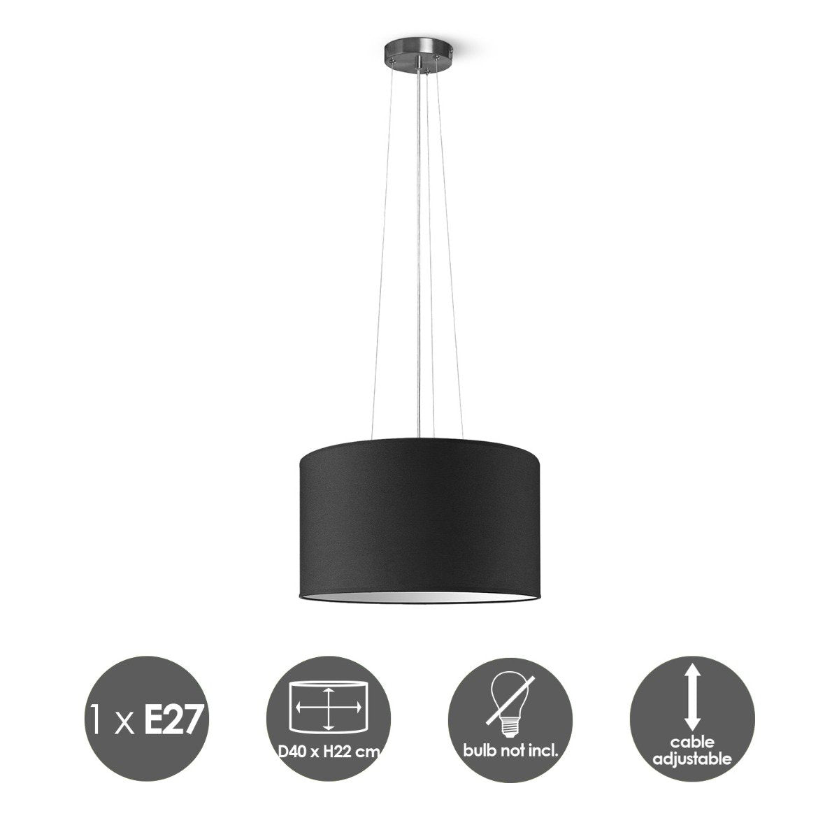 Home Sweet Home hanglamp Hover met lampenkap, E27, zwart, 40cm