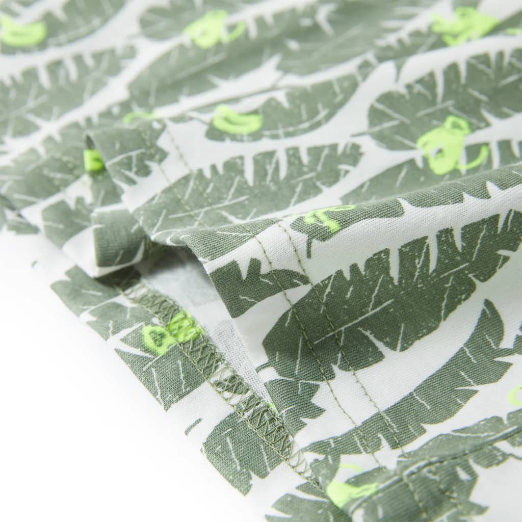 Unsere Bekleidungslinie umfasst erschwingliche, hochwertige und langlebige Alltagskleidung für Kinder im Alter von 1,5 bis 10 Jahren. Unser Sortiment umfasst Jacken, Pullover, Hemden und vieles mehr, die in verschiedenen Stilen, Größen und Farben erhältlich sind. Um dem hohen Qualitätsstandard auf dem Markt gerecht zu werden, verwenden wir hochwertige Materialien und fortschrittliche Fertigungstechniken. Dieses Kinder-T-Shirt hat kurze Ärmel, einen Rundhalsausschnitt und eine gerade Passform. Das Kinder-T-Shirt ist mit Blättern und kleinen Affen bedruckt. Zu 100 % aus Baumwolle gefertigt, fühlt sich das Kurzarmshirt weich und angenehm an. Gut zu wissen: Die Größentabelle in der Abbildung enthält Abmessungen für Kinder im Alter von 1,5 bis 10 Jahren, die die Größe, Brust, Taille und Hüfte abdecken. So kannst du leicht die Größe finden, die für dein Kind geeignet ist.