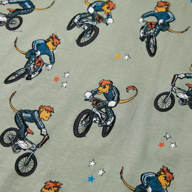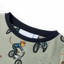 Bei unserer Kollektion für Kinderkleidung dreht sich alles um erschwingliche, hochwertige und langlebige Alltagskleidung für Kinder im Alter von 1,5 bis 10 Jahren. Unser Sortiment umfasst Jacken, Pullover, Shirts und vieles mehr, mit einer Vielfalt an Stilen, Größen und Farben. Um dem hohen Qualitätsstandard auf dem Markt gerecht zu werden, verwenden wir hochwertige Materialien und fortschrittliche Fertigungstechniken. Dieser Kinderschlafanzug mit kurzen Ärmeln hat einen Rundhalsausschnitt, einen elastischen Bund und eine normale Passform. Der Kinderpyjama ist mit Tier-auf-Fahrrad-Muster bedruckt. Der Kinder-Pyjama ist aus weichem Material (100 % Baumwolle) für zusätzlichen Komfort und Atmungsaktivität gefertigt. Gut zu wissen: Die Größentabelle auf dem Bild gibt die Maße für Kinder im Alter von 1,5 bis 10 Jahren an und umfasst die Größe, Brust, Taille und Hüfte. So kannst du leicht die richtige Größe für dein Kind finden.