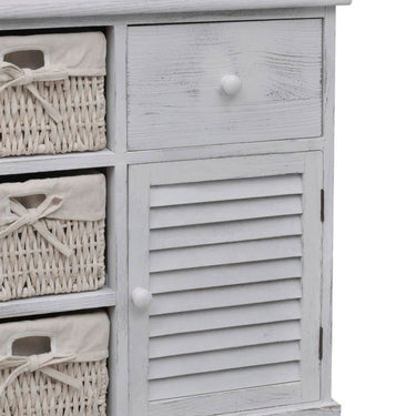 Diese beeindruckende Kommode aus hochwertigem Holz verfügt über ein schlichtes und zugleich elegantes Design. Sie ist eine großartige Aufbewahrungslösung und zugleich ein tolles dekoratives Möbelstück. Dieser robuste, kleine Schrank mit 3 Körben bietet viel Platz zum Verstauen deiner Sachen und verleiht jedem Zimmer gleichzeitig einen Hauch von Landhausstil. Das Korb-Regal wird sicherlich eines deiner Lieblingsmöbel werden. Achtung: Um ein Umkippen zu vermeiden, sollte dieses Produkt mit der mitgelieferten Wandhalterung gesichert werden.