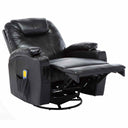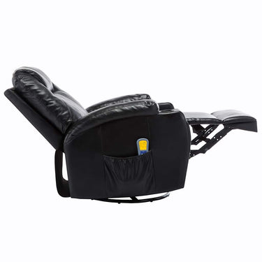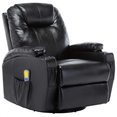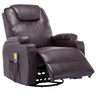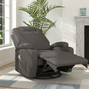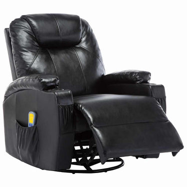 Unser qualitativ hochwertiger elektrischer Massage-Schaukelsessel ist die perfekte Wahl zum vollständigen Entspannen nach einem harten Arbeitstag. Mit erstklassigem Kunstleder bezogen und mit einer dick gepolsterten Sitzfläche und Rückenlehne versehen, bietet dieser Sessel höchsten Komfort. Der TV-Sessel ist auch drehbar und ermöglicht dadurch einen 360°-Sicht auf das Zimmer. Der Massagesessel verfügt über 8 Massagepunkte, um den ganzen Körper zu entspannen. Dank der Heizfunktion strahlt der Sessel angenehme Wärme aus, die zum Lösen von Verspannungen beiträgt. Rückenlehne und Fußstütze lassen sich je nach Bedarf in verschiedenen Winkeln verstellen. Die mitgelieferte Fernbedienung kann in der Seitentasche des Massagesessels verstaut werden. Der elektrische Massagesessel ist einfach zu montieren. Hinweis: Das Produkt verfügt über einen USB-Anschluss, aber die zertifizierte 5-V-USB-Stromquelle ist nicht im Lieferumfang enthalten.