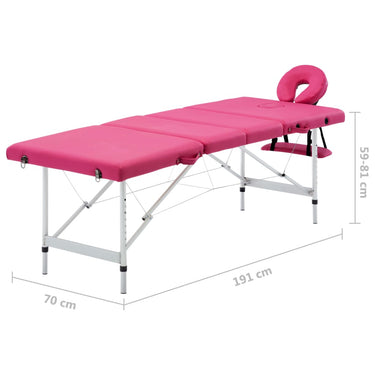 Massageliege Klappbar 4-Zonen Aluminiumgestell Weiß und Rosa