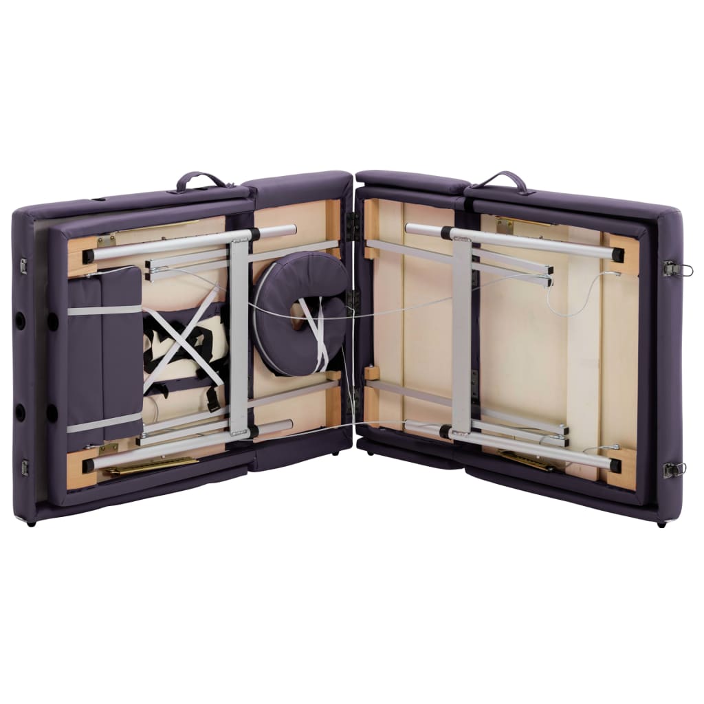 Dieser klappbare Massagetisch mit 4 Zonen verfügt über einen Rahmen aus Aluminium und ist sowohl für den privaten als auch den professionellen Gebrauch geeignet. Die dicke Schaumstoff-Polsterung bietet hohen Komfort und ist resistent gegen Desinfektionsmittel und Massageöl. Die Kopfstütze und die Armlehnen sind verstellbar, ebenso wie die Höhe der Massageliege, wodurch der Kunde bequem liegen kann und der Masseur die gewünschte Arbeitshöhe wählen kann. Für den einfachen Transport und die Aufbewahrung der Massageliege sorgt die mitgelieferte Tragetasche. Dieser Massagetisch lässt sich einfach zusammenbauen.