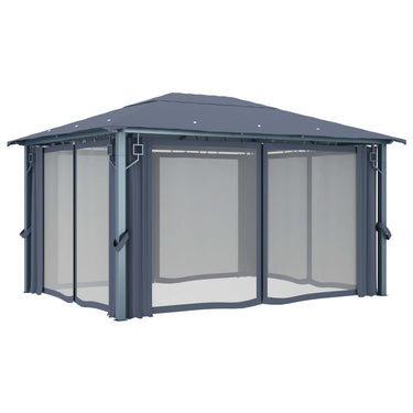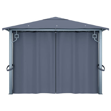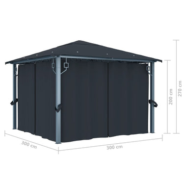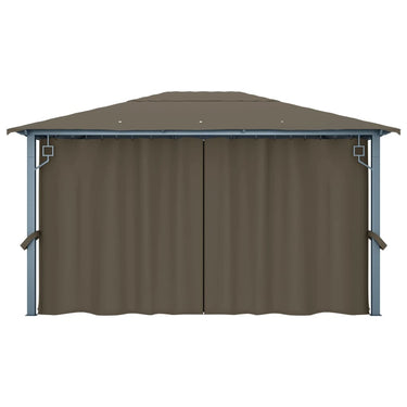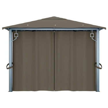 Pavillon mit Vorhängen & LED-Lichterkette 300x300 cm Taupe Alu