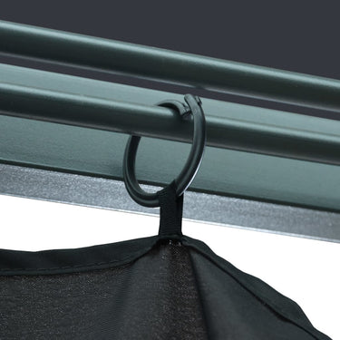 Dieser Pavillon mit Vorhängen hat ein klassisches, elegantes Design. Er wird der perfekte Sonnenschutz für Veranstaltungen im Freien sein, wie zum Beispiel Abendessen, Grillpartys, Familienfeiern usw. Das Dach aus Oxford-Stoff mit PA-Lackierung schützt Sie vor blendendes Licht und schädlichen UV-Strahlen. Der Pavillon besitzt eine solide Konstruktion aus starkem Aluminium und Stahl und ist dadurch rostbeständig und sehr stabil. Zudem wird der Pavillon mit 4 Seitenteilen geliefert, die bei schlechtem Wetter nach unten gezogen werden können. Netzfenster sind ebenfalls dabei, um Insekten fernzuhalten und gleichzeitig eine gute Luftzirkulation zu gewährleisten. Die mitgelieferten Klettverschlüsse sorgen für eine einfache Befestigung. Darüber hinaus schafft die Lichterkette eine gemütliche Atmosphäre im Garten bei Sonnenuntergang. Die Leuchten sind umweltfreundlich, da sie tagsüber durch Sonnenenergie aufgeladen werden. Der Pavillon lässt sich mit den mitgelieferten Befestigungsmaterialien leicht am Boden befestigen. HINWEIS: Dieses Produkt sollte NIEMALS bei schlechtem Wetter wie starkem Wind, starkem Regen, Schnee, Sturm usw. verwendet werden.