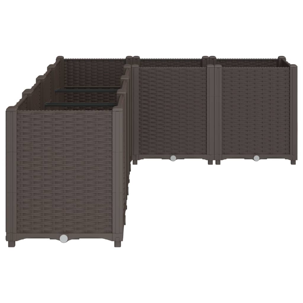 Dieser Blumenkübel ist eine ausgezeichnete Wahl für Kletterpflanzen im Garten oder auf der Terrasse. Langlebiges Material: Polypropylen ist ein beliebter Kunststoff, der bei der Herstellung von Gartenmöbeln häufig verwendet wird. Er ist leicht, robust und stoßfest.Großzügiges Fassungsvermögen: Der Pflanzkübel bietet viel Platz für den Anbau von Gemüse, Blumen und anderen Pflanzen.Praktisches Design: Die ideale Bodenschicht bewahrt Feuchtigkeit und ermöglicht eine leichte Drainage. Modulares Design: Dieses Pflanzgefäß besteht aus 7 Pflanzkästen, die sich je nach Bedarf frei miteinander kombinieren lassen.Ansprechende Rattan-Optik: Mit seiner ansprechenden Rattan-Optik verleiht der Pflanzkübel deinem Außenbereich eine elegante Note.